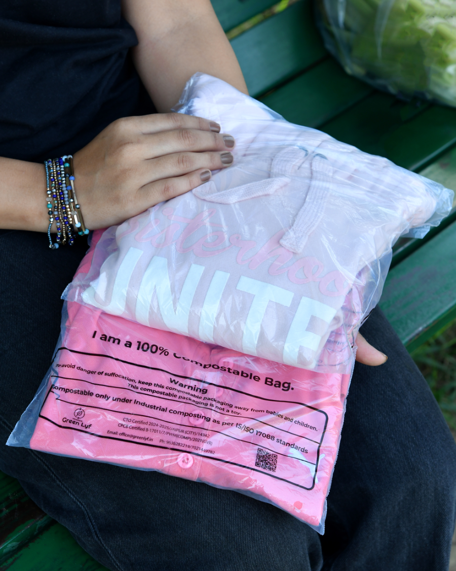 We stepped in and replaced their plastic bags with 20-micron Neusmart Green LyfCompostable Garment Bags — completely eco-friendly, custom-fit for their products, and certified compostable. Not only did this switch align with their sustainability goals, but it also reduced packaging costs due to the optimized micron thickness and material efficiency.